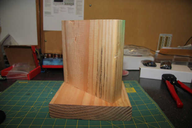 Tome otro trozo de madera 6" y marque la ubicación de dos agujeros, uno en cada esquina de la madera. Ver imagen.