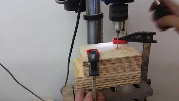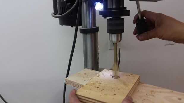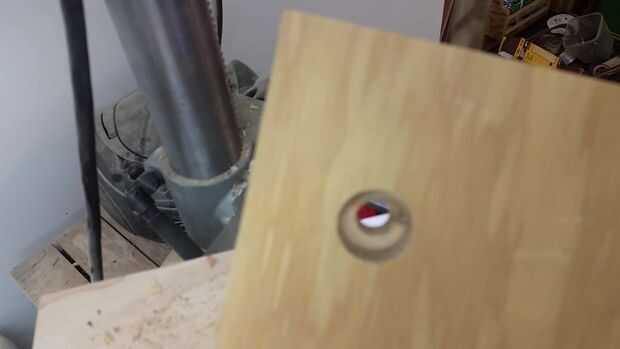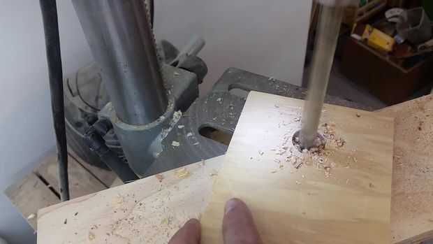 Usando la broca taladrar los agujeros para los zarcillos. Perforé profundidad suficiente para que el cojinete está al ras con la plywwod. Luego perforé todos lo waythrough con una broca de márgenes.