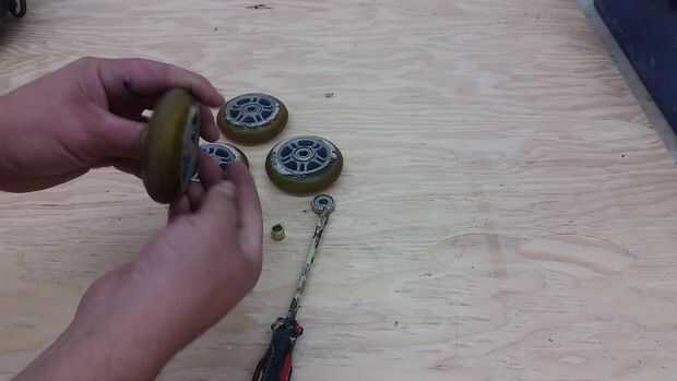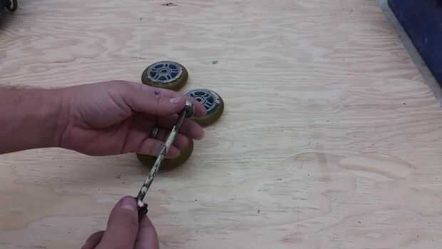 Una vez que la hoja del rodillo a la tienda, me quité las ruedas usando dos llaves allen.