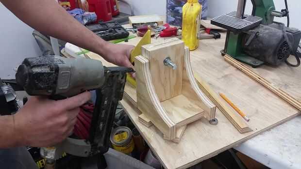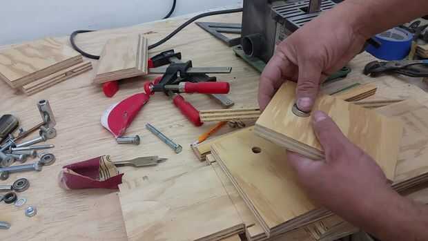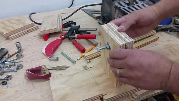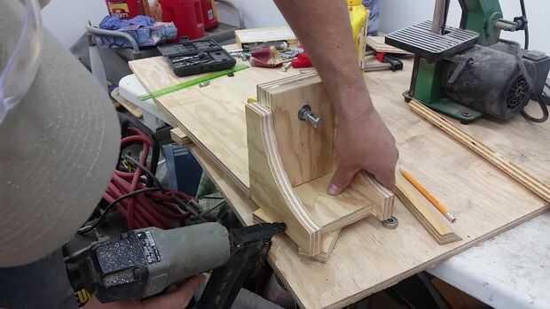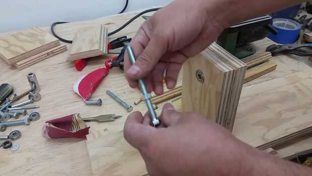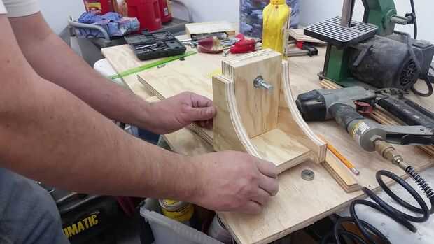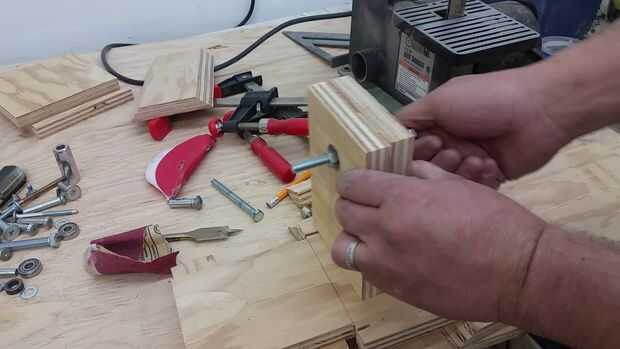 Usé un perno de 5/16 y un par de tuercas de 5/16 para el cabezal. Corté un radio en los soportes laterales para el cabezal.
