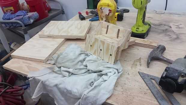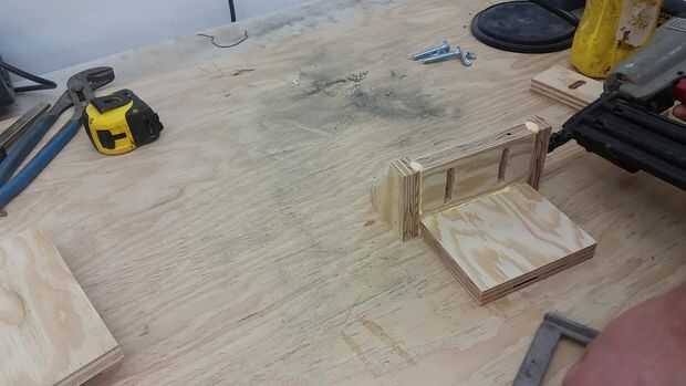 empecé a cortar piezas y chapas de madera para soporte de la herramienta.