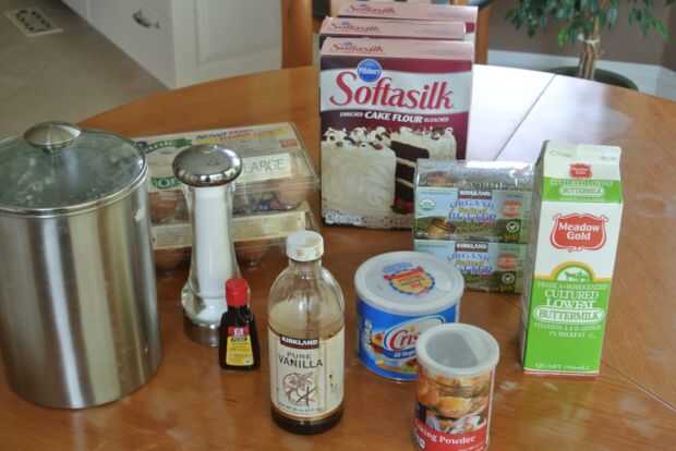Para la torta: (hace 26 tazas de la masa, lo suficiente para mis cuatro niveles pastel. Ajuste según sea necesario, consulte la tabla en el paso anterior)
