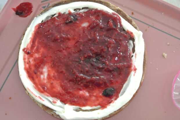 En primer lugar, hacer el relleno: hervir todos los ingredientes de relleno en fuego medio-alto, revolviendo constantemente. Realmente Triturar las frambuesas con un machacador. Deje que se enfríe.
