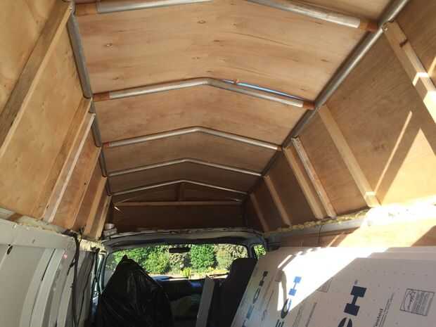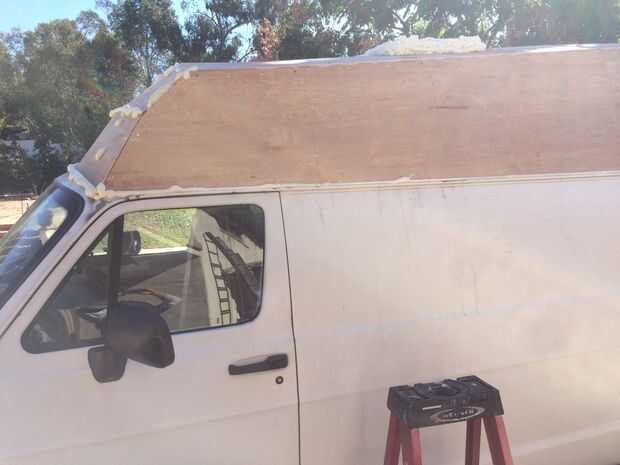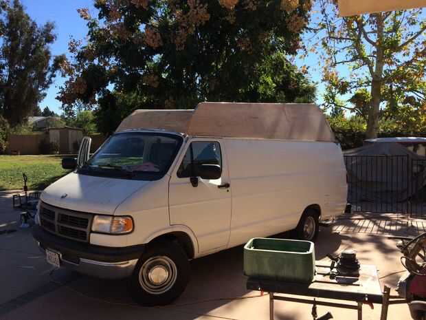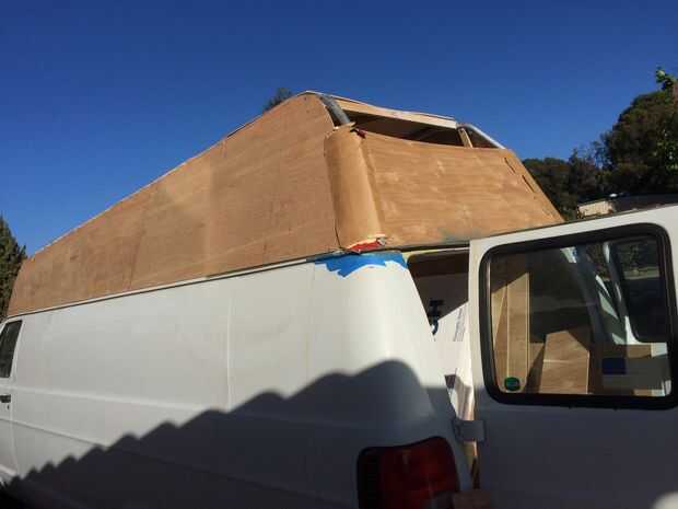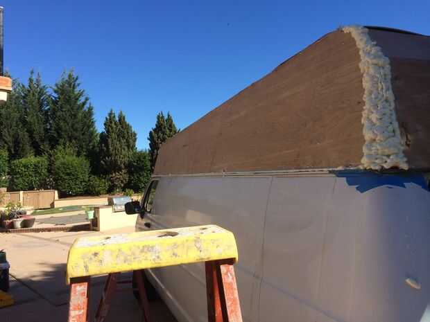 Se corta la parte superior detrás del puente de 1 º y de 4" por encima de la cuneta, por instrucciones recibidas del vendedor superior van. Los asientos son frente a la primera llave, así que realmente no aguantas allí de todos modos. Esto da apoyo y protección para el conductor y el pasajero. Corté con una combinación de Cizallas para chapa eléctrica y un disco abrasivo. (HF 68199 y 68523)