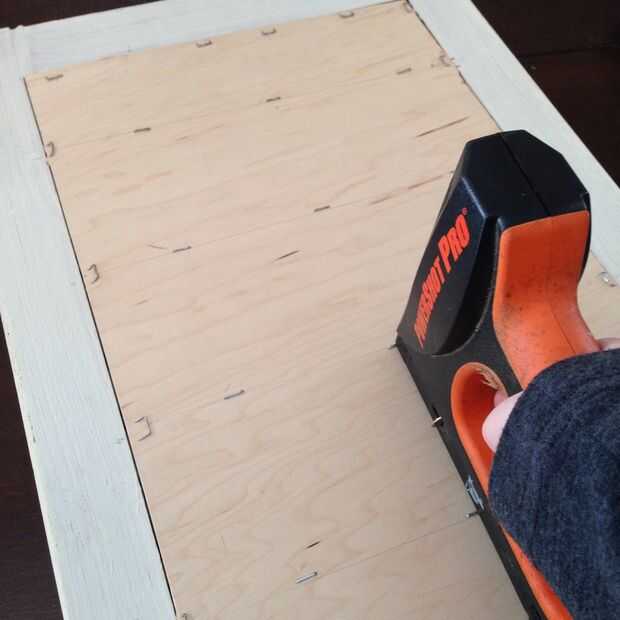 Fui a Lowe y sacó un pedazo de madera contrachapada de la sección anteriormente cortada de madera gratis! La madera era todavía por lo menos 4 pies por pieza de 6 pies de capas ¿mencioné que era libre? Medí el interior borde de la persiana y corte la madera a su tamaño. Trace una línea en la parte posterior de la madera marcado cada obturador 3. No sólo engrapado la madera en su lugar pero también engrapado a lo largo de la línea para cada obturador 3. Esto creará una parada para el correo por lo que no se deslice completamente en el organizador y quedan atrapado entre el obturador y la madera.