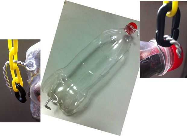 Utilice alambre de aluminio para fijar la parte inferior y el cuello de la botella que se cuelga de la cadena.