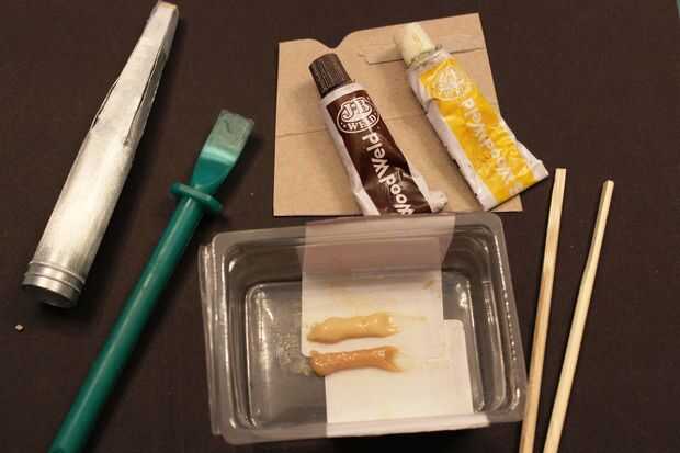 4. para pegar la nariz vuelta juntos con resina. Todo lo que tenía era marrón, eso es lo que usé. Epoxi epoxy, aunque mina dice que es de madera... todos se pintarán de todos modos. Consejo: limpiar el área con alcohol primero que hacerlo agradable y limpio, y con la parte metálica debe producir un enlace epoxy fuerte.