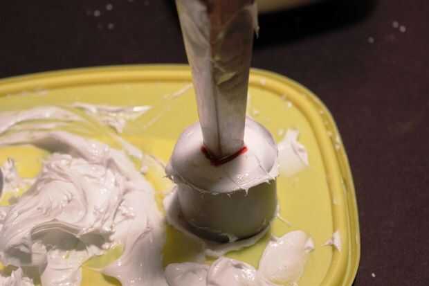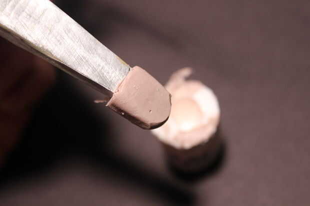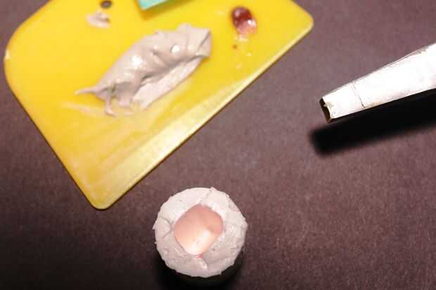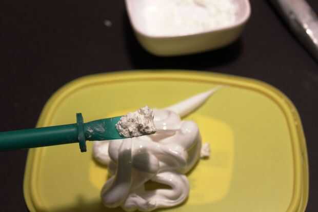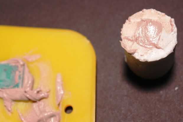 3. mezclar la silicona con la maicena, revolviendo vigorosamente hasta que uniformemente incorporados. Pone un pesado olor acético, así que mejor hacerlo fuera. Carga en PVC tubo sección, aplanar/subbase la parte superior y entonces en el cono de la nariz hasta la parte superior, screed/aplane alrededor de él y dejarlo sobresaliendo hasta que la silicona se establece, que no debe ser muy largo.