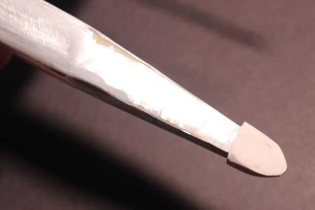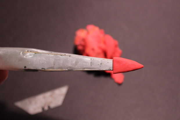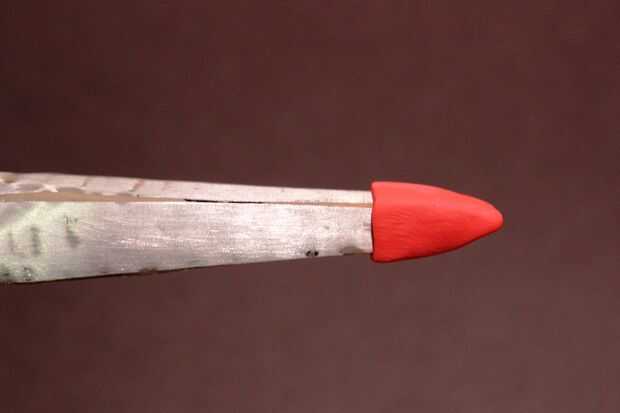 1. uso de modelado de arcilla y un cuchillo afilado (utilicé una lámina de cortador de la caja) a la moda del cono de nariz en nariz.