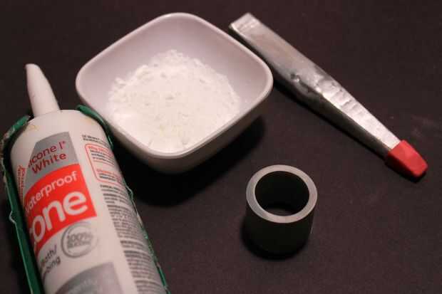 2. corte un pedazo pequeño de tubo de PVC de 3/4 para sostener el molde de silicona (o usar algo que llevará a cabo) y agarrar el tubo de silicona y el almidón de maíz y una paleta mezcladora. Usted puede leer una muy buena ' ible en moldeado de silicona (lamentablemente la función de hotlinking no funciona para mí o yo añadiría aquí, pero usted puede buscar para él), pero esencialmente, añadiendo almidón de maíz (yo usé maicena de parte 1 a 4 piezas de silicona, aproximadamente) a 100% de silicona (tipo i tipo II no funciona) le permitirá moldear en cualquier espesor y cura rápidamente en menos de una hora. Un proceso muy rápido con una reproducción perfecta.
