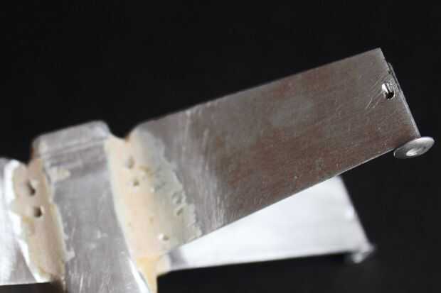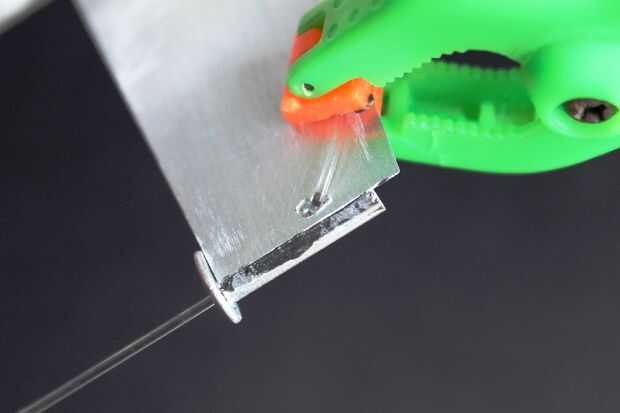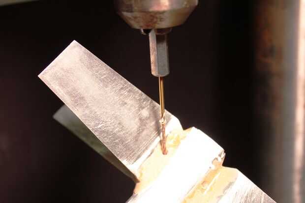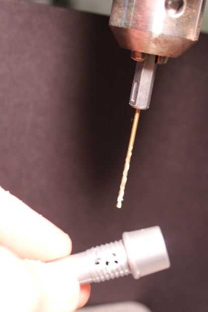 1. perforaciones pequeñas (1/8") en el cuerpo y debajo de las alas y en los remaches de la pistola a la fibra a través de la serpiente. Otro conjunto de orificios para las fibras del motor del taladro.