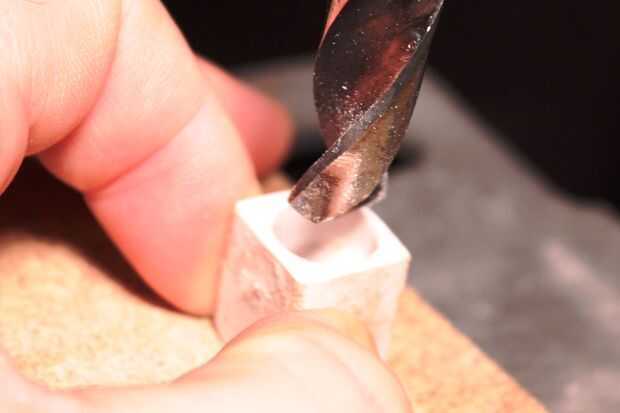 3. Perfore un hueco para las pilas. Mina eran 1/2". Línea y taladre los agujeros para los cables del interruptor de batería y LED terminal.