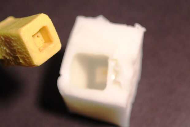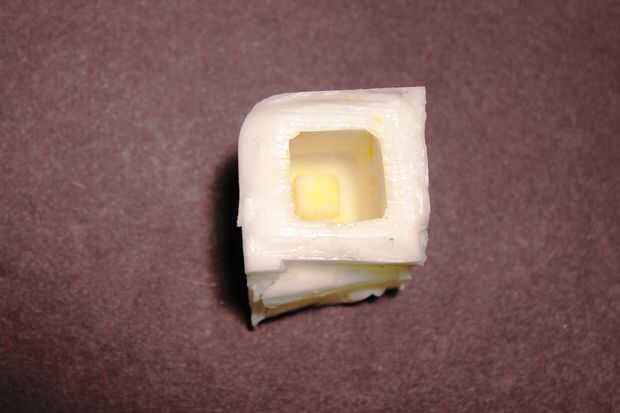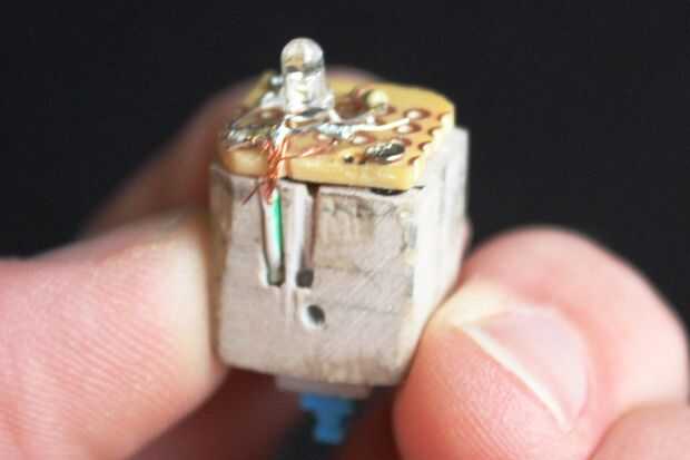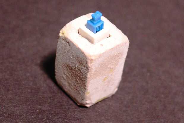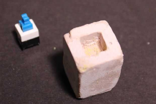 1. necesita una configuración muy compacta para caber en la parte posterior del cuerpo de X-wing, no podía pensar en nada asi que hice mi propio. Primero había moldeado una corredera con arcilla y había encajado un interruptor (de un LED tealight) luego la quitó, dejando un vacío.