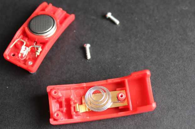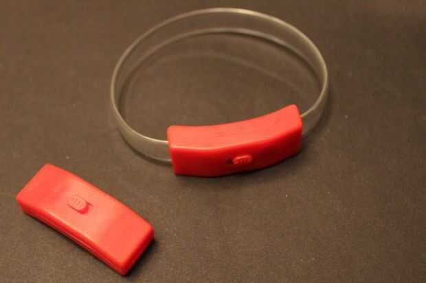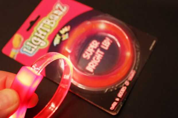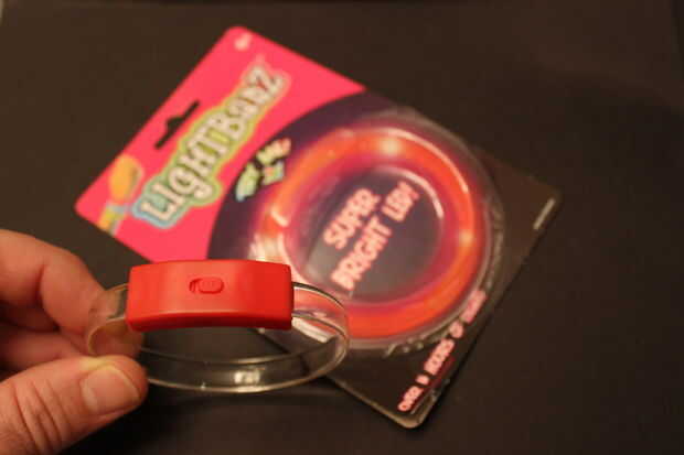 He encontrado una barata pulsera óptica en el almacén del dólar que debería funcionar perfectamente - el rojo LED ya se utiliza para la iluminación de la pulsera, así que debe ser fina como la fuente de luz para el X-wing. Resultó que tenía que llevarlo aparte/reconfigure para conseguir que encaje en el cuerpo de X-wing.