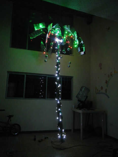 Con un poco de ingenio y cortos de dinero cada cual a su manera las palmeras pueden Brillar un 2800mt sobre el nivel del mar. Lo importante es estar en Familia y los sueños y la fe iluminen el camino del fururo.