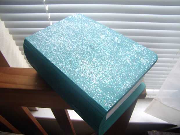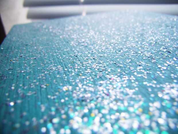 Antes de seca el pegamento diluido, había espolvoreado un montón de brillo sobre la caja.