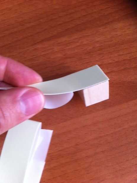 Coloque con cuidado la cinta adhesiva en el bloque de madera, tratando de seguir los lados. Luego retire la cinta sobrante. Hacer esto una vez por cada lado.