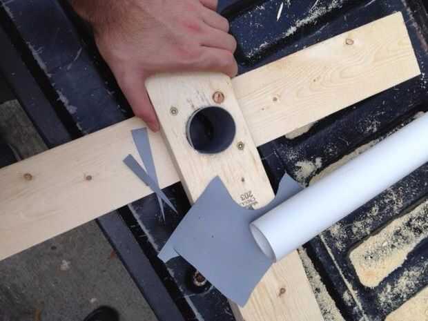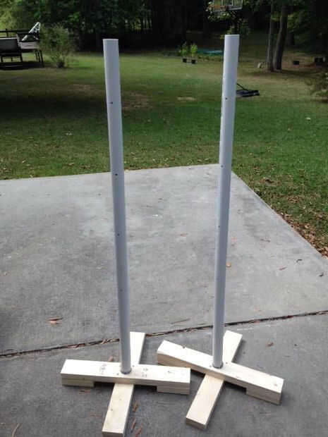 Ya que son los agujeros que ha cortado 2" de diámetro, y el tubo es sólo 1 7/8" de diámetro, deberás utilizar una cuña para que los polos se ajuste en la base más bien.