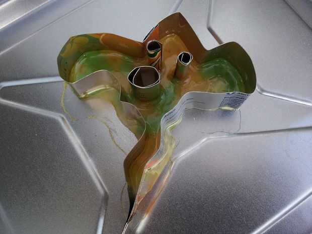 A continuación, utilizar un guante de horno para sacar la bandeja y coloque sobre una superficie segura para enfriar durante unos 5 minutos.