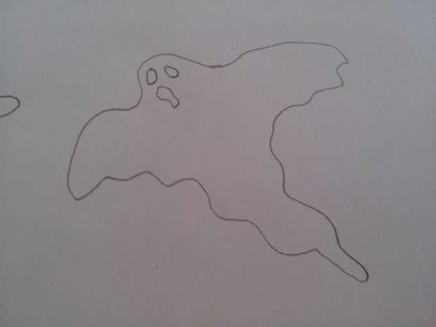 Agarrar el lápiz 3B favoritos (yo prefiero las líneas más oscuras cuando dibujo) y dibuje sus macabros Ghostie.  Añadir unos ojos y una boca spoooky porque cubriremos creando vacíos en el molde que hace en el paso 7.