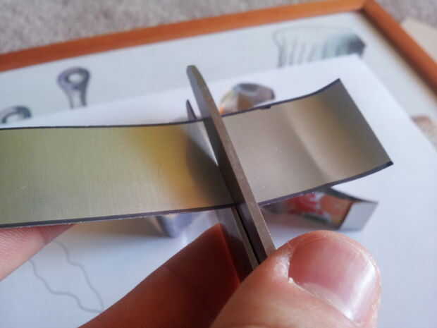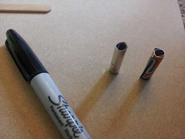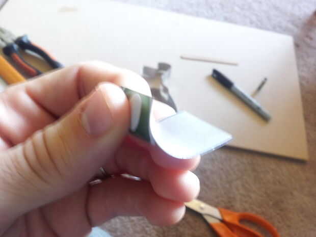 Para hacer los ojos, tomar esa franja aluminio habíamos quedado y cortar aproximadamente una pulgada de él.