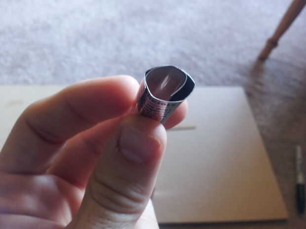 Usando su dedo, con cuidado, doblar sobre sí mismo hasta puede rizar en firmemente en un cilindro largo. Balanceo en una ronda de lápiz o bolígrafo puede ayudar a conseguir esta forma rápidamente.