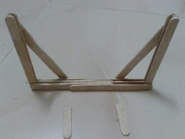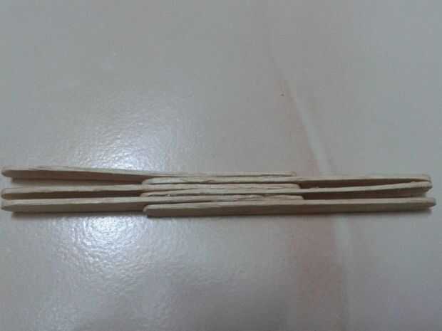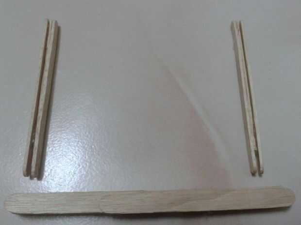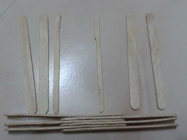 3) luego realizar lado pilar, para tome 5 de pop palo y cortar un palo pop a dos piezas (lado largo). Cortar el mitad stick pop a amplitud de la barra pop y tomar el equilibrio. Ahora 6 pop stick disponible.
