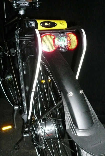 (* nota que en la moto, atamos la cinta mirando hacia atrás en la bandeja trasera y cinta adicional en la parte exterior de las estancias del asiento.)