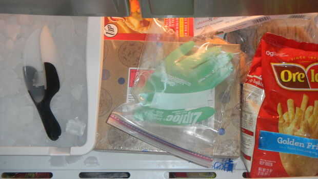 siguiente (opcional) es poner en un holgado, así que si hlatex guante se sale no tiene agua en su congelador.