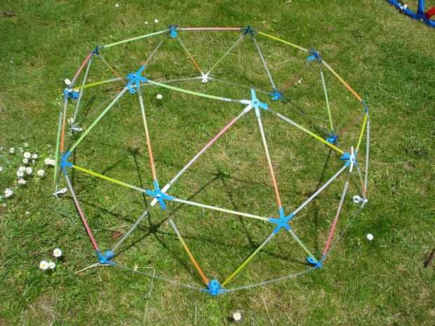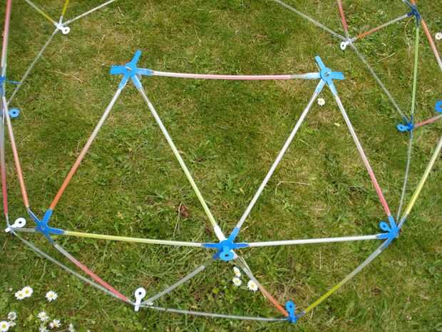 El Strawbees de 2 patas se utilizan para colocar paja horizontal para hacer un Pentágono en la parte superior de la capa media. Usted tendrá que doblar estos Strawbees para obtener una buena forma y evitar destacando la paja. Insertar palillos del resplandor como vas.