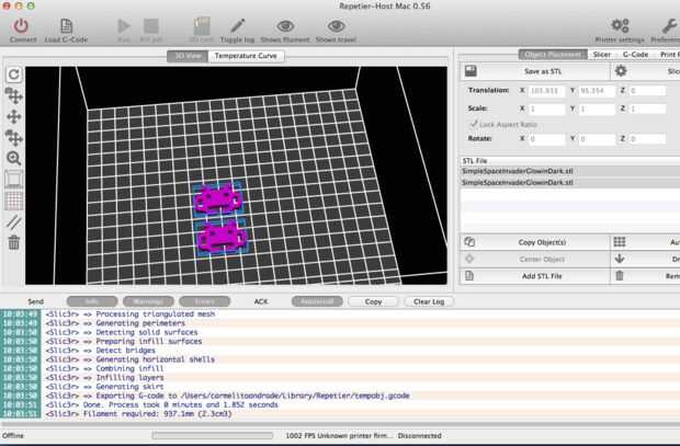 Descargar el archivo STL de invasor de espacio Simple y carga en el software de la impresora dos veces como muestra las fotos de arriba y rebanada el archivo,