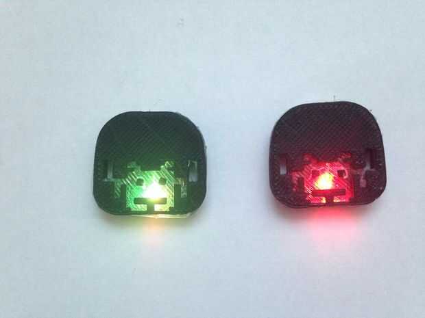 Los LEDs de prueba, conecte el extremo largo del LED a la + final de ve de la batería (se debe ver un signo en un lado de la batería +) y el extremo más corto hasta el final - ve de la batería. A continuación, colocar la batería y LED en 3D impreso parte como se muestra en la foto de arriba.