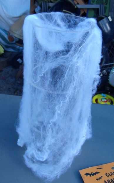 Las rondas acrílico tuve no eran lo suficientemente altas para mi propósito usé algunos de mi cola todo para nada para unir los 3 tuve juntos en un cilindro más alto. Entonces se extendía de la tienda de dólar cobwebbing sobre el cilindro