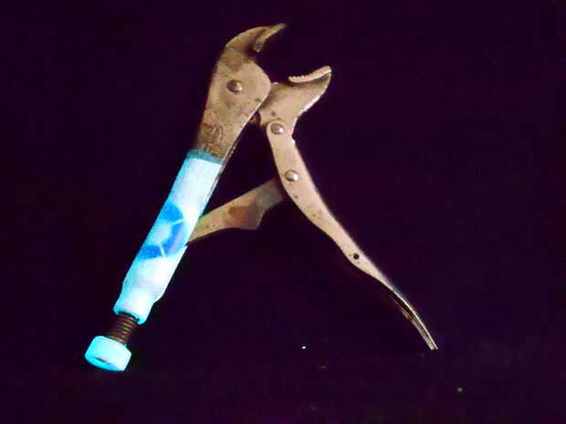 Finalmente encontré un uso para una posluminiscencia larga, dim: manijas de la herramienta. De vez en cuando que trabajan fuera durante la noche (por ejemplo, camping, o en caso de emergencia) y se pierde una llave o algo. A veces tengo que esperar hasta el día encontrarlo. También me gusta que la gente pida prestado mis herramientas, y sería bueno si fueran fácilmente identificables. He probado con cinta para tubos con un patrón de cinta aislante de color, pero [alerta de blasfemia] odio cinta aislante porque el adhesivo es todo gomoso y no es realmente útil para cualquier cosa.