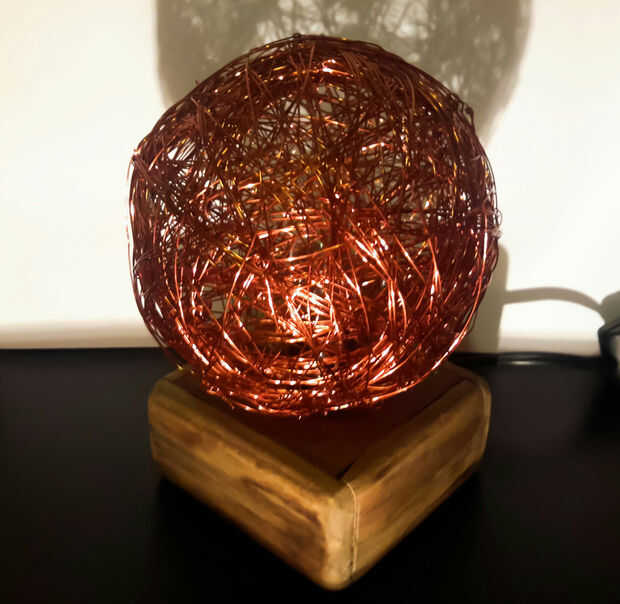 tuve una pequeña luz incandescente puesta, así que decidí hacer una lámpara de uso. Mientras estaba buscando materiales utilizar en el proyecto, he encontrado en una caja algunos sucios del alambre de cobre. La idea de una bola de alambre de cobre hi