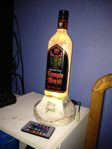 Este Instructable detallaremos en mi proceso de agregar una llamarada luz reflectante en el interior de la botella de a(ny) con 16 color cambiar LED debajo de él como iluminación. Este es un diseño muy sencillo que cualquiera puede hacer. La base de madera fue un toque artístico que personalmente quería obtener, haciendo de este más un pedazo de arte; Aunque cualquiera puede hacer una base simplificada para agilizar el proyecto.