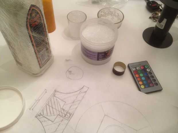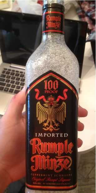 Decidí hacerlo un lado de la botella a la vez se podría sentar a su lado y dejó el vidrio pesan en el pegamento. Aunque honestamente usted podría simplemente pegar la botella entera y entonces añadimos el vaso y sacudir a ese bebé como una maraca! Bien tal vez un poco más que eso. pero el pegamento es fuerte con menor brillo y seca bastante rápido. Usé un secador para acelerar el proceso.