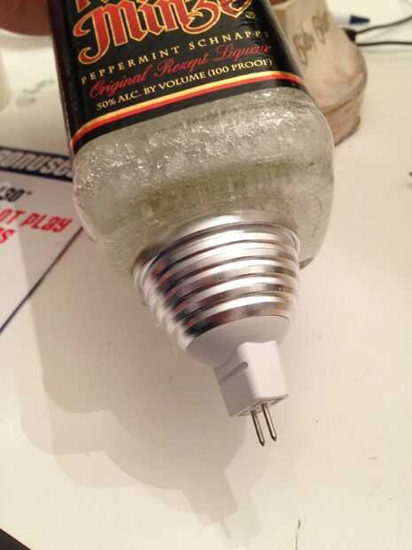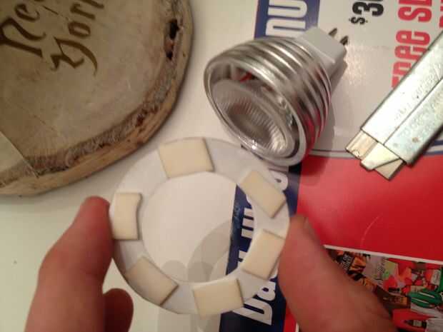 Esto fue todo perfecto en mi opinión porque permitía todo para ser de fácil acceso y cambio/corregir. La cinta de doble cara no es permanente si el LED necesita ser reemplazada y la botella/Bombilla Saque fácilmente para cambiar/reemplazar el casquillo MR-16.