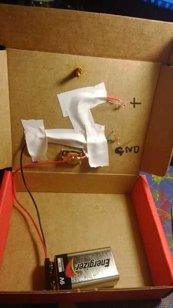 Hace 53 series de 3 cada uno en formación de triángulo ánodo condujeron a cátodo dejando la articulación del último parche en los carriles de tierra resistencia y 9v.