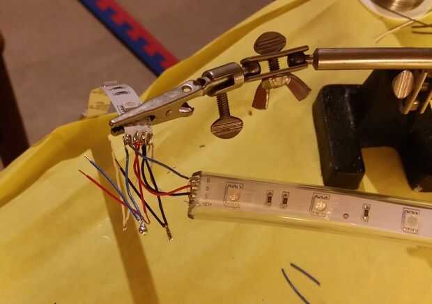 - soldadura (x 4) del siguiente segmento de cada "z" a la franja de brazo izquierdo LED