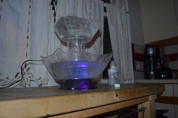 La Asamblea es bastante sencilla - sólo tener en cuenta que es pesado una vez que se llena, por lo que probablemente es un buen ideal para armarlo en la mesa donde se sirven el golpe. Poner el recipiente con las luces boca abajo sobre su mesa, luego el tazón de fuente más grande de eso. El bol mediano, cilindro y bomba combinación simplemente sentarse dentro del recipiente más grande. Llene con una bebida de su elección que contiene agua tónica, asegurándose de que usted tiene suficiente para mantener la bomba sumergida. Usted debe obtener un buen hilo sobre el lado del tazón de fuente superior cayendo en el recipiente inferior.