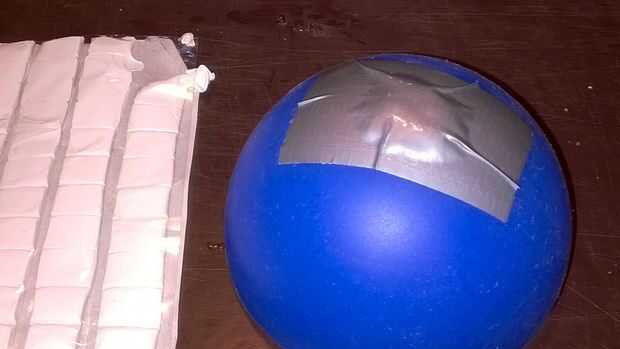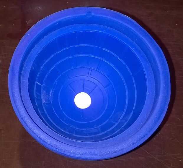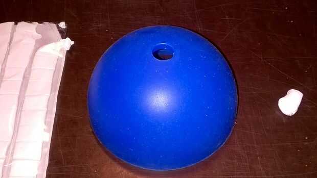 El molde para la parte inferior de la estrella de la muerte tiene un agujero para que pueda llenar con agua. Puesto que vamos a verter la resina, tendremos que tapar encima de. Utiliza algún cartel montaje masilla para llenar el agujero, luego había cubierto con cinta adhesiva para un apoyo extra.
