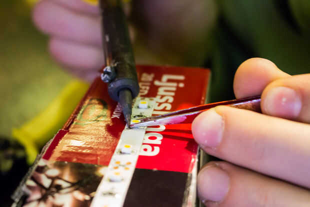 Debido a las tiendas que visité no tener 3528 LEDs decidí simplemente desoldar algunos de una pieza de 4.8W / m LED tira tenía puesta alrededor. A pesar de desoldadura parece más trabajo, yo creo que esto realmente me ayudó a hacer todo más rápido.