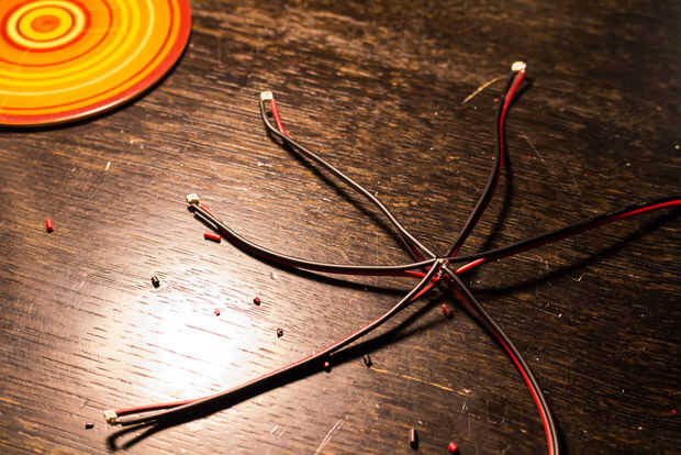 Como para soldar la salida del LED y el LED superior con otros cables - soldadura cables un poco más largos que el camino para alcanzar el compartimento que puede levantar un poco y soldar entre sí al montar. También es una buena idea añadir un poco de pegamento en los cables expuestos en el centro de la estrella y han aislado otros cables ya que habrá algunos puntos donde se cruzan debido al diseño y aspiraría a corto algo después de todo estaba montado.