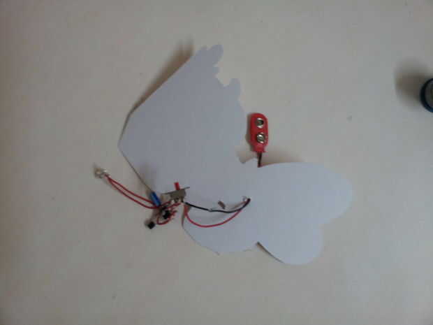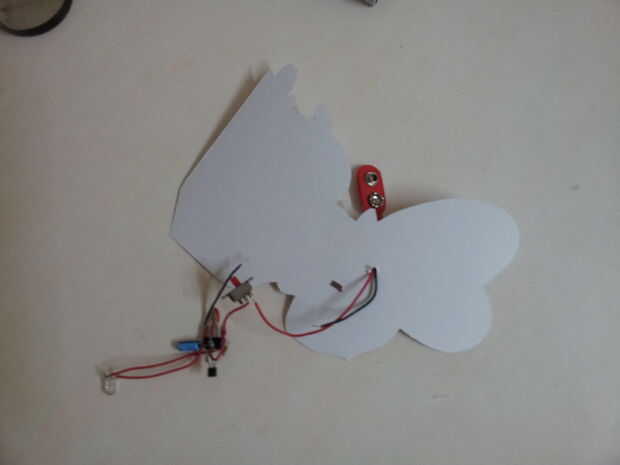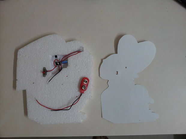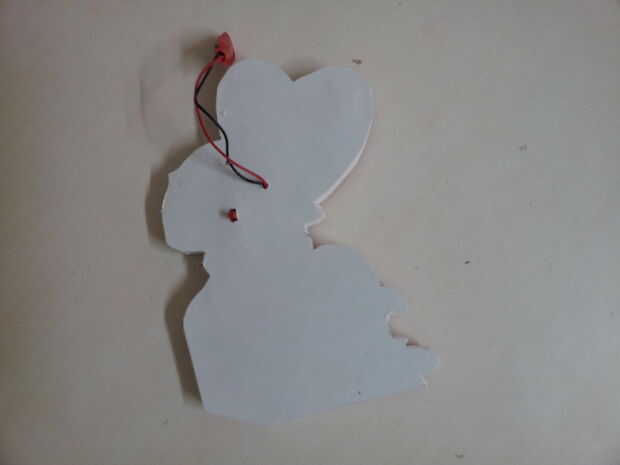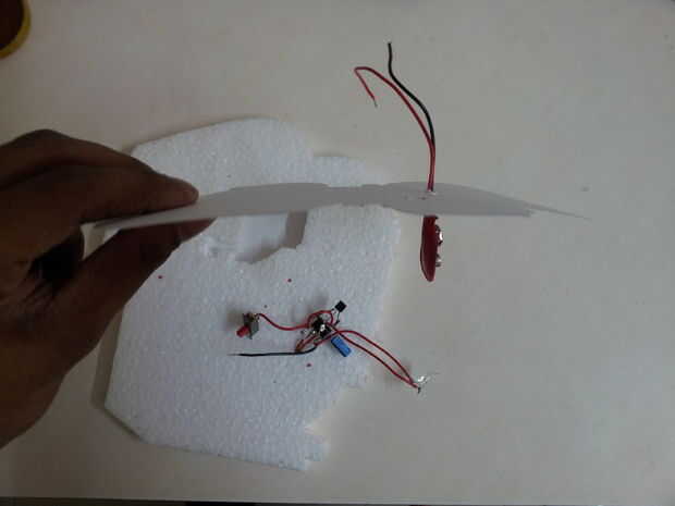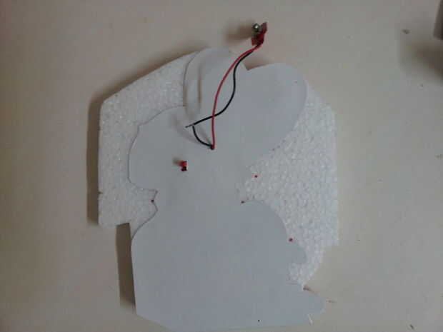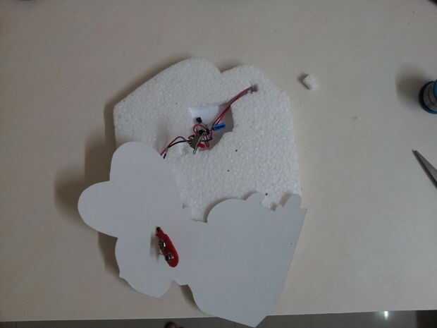 6) poner un trozo de thermocol detrás el LED y pegarlo con el pegamento para que el LED no Haz empujado detrás del frente.