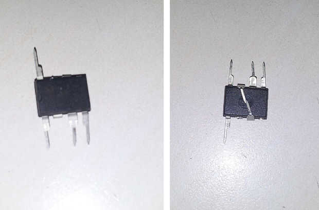 El circuito no tiene un PCB. Esto lo hace más aerodinámico y compacto. Pin 5 y 7 del 555 no se utilizan entonces las cortó. Doble pin 2 y 6 a conectarse entre sí y doble restantes pines planos (ver imagen).