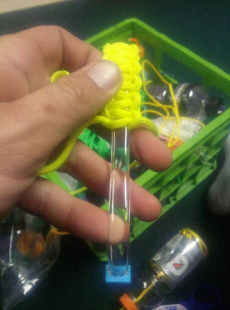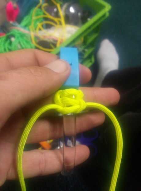 Aquí le damos una puntada básica 2 color: dos colores Paracord Salomón Bar