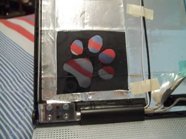 Ahora encontrar un lugar donde el conjunto de luz de fondo se ajusta detrás de la pantalla LCD. En el exterior de la tapa, sacar el diseño que desea encender para arriba la tapa. Acabado de desmontar la tapa y cortar su diseño.