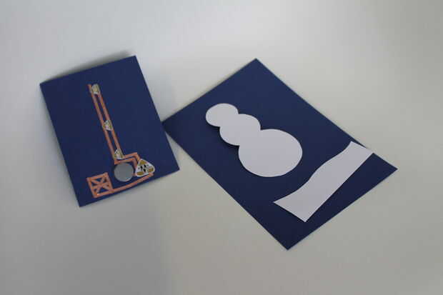 Corte de un muñeco de nieve de papel de tarjetas. Pegue el muñeco de nieve a la parte delantera de la tarjeta con pedazos de espuma de artesanía para mantenerlo levantado sobre los LEDs.