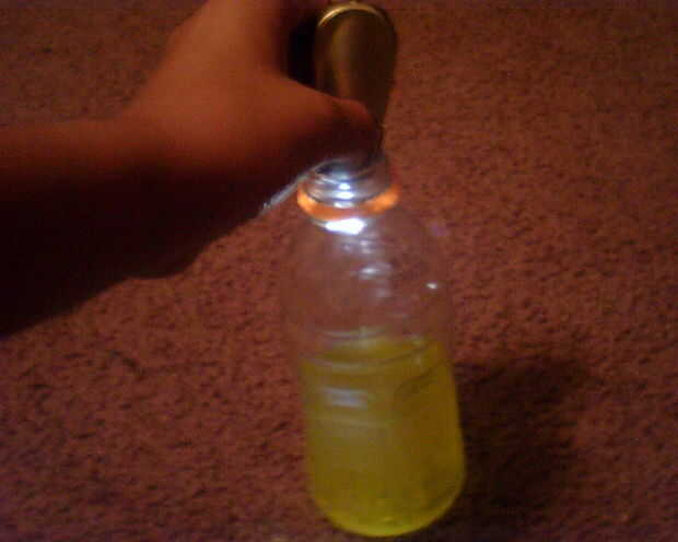También funciona con pequeñas linternas, pero no así. No he probado con diferentes líquidos, sabores, tamaño de las botellas o luces diferentes; así que por favor, experimentar con estas variables y me avisas los resultados.